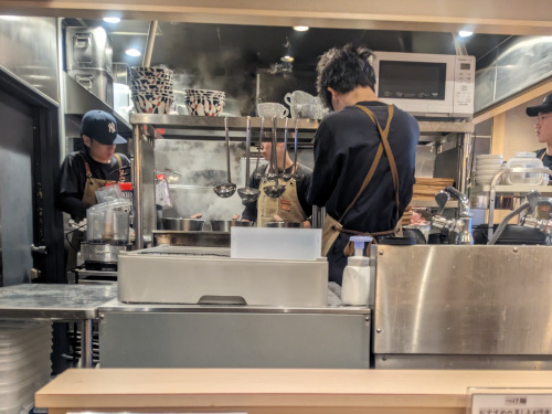 店内は、ピカピカのオープンキッチンと白木のカウンターが非常にオシャレで、お客さんも女性や若者が多いですな。