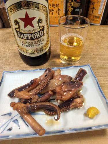 まずは赤星を頼んで、いか下足煮。柔らかく甘辛味に煮込まれたゲソはビールにピッタリ。