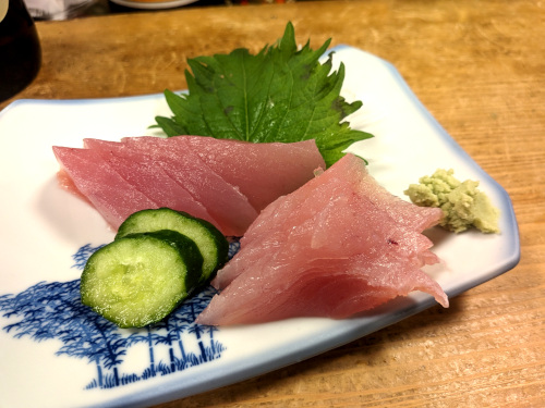 刺し身からはシビマグロ。肉厚に切られたシビはサクッと歯切れ良く、あっさりとした味わい。