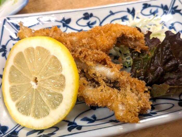 これも初見の穴子フライ。ザックリとしたパン粉の衣と、ふんわり肉厚の穴子のコントラストが絶妙。ボリュームも満点で大当たりでした!