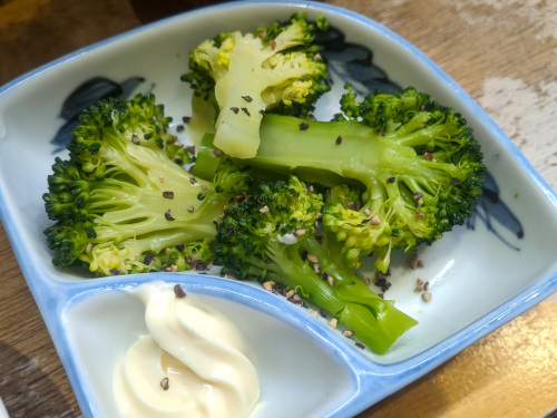 ブロッコリーマヨで野菜もいただいてヘルシー(笑)。