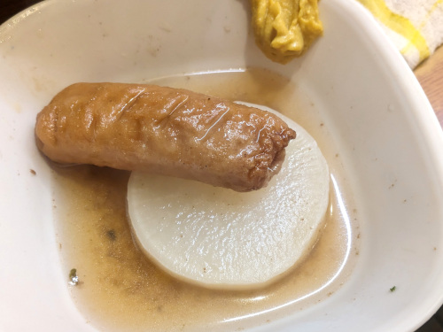 まずはおでんのごぼ天と大根で冷えた体を温めました。
