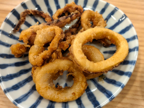 スルメイカの天ぷらはプリプリで旨いけど、ちょっと量が物足りないかな。