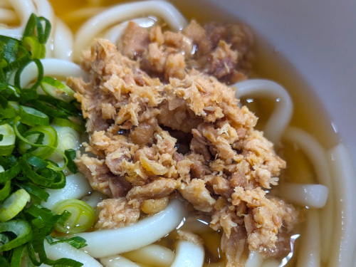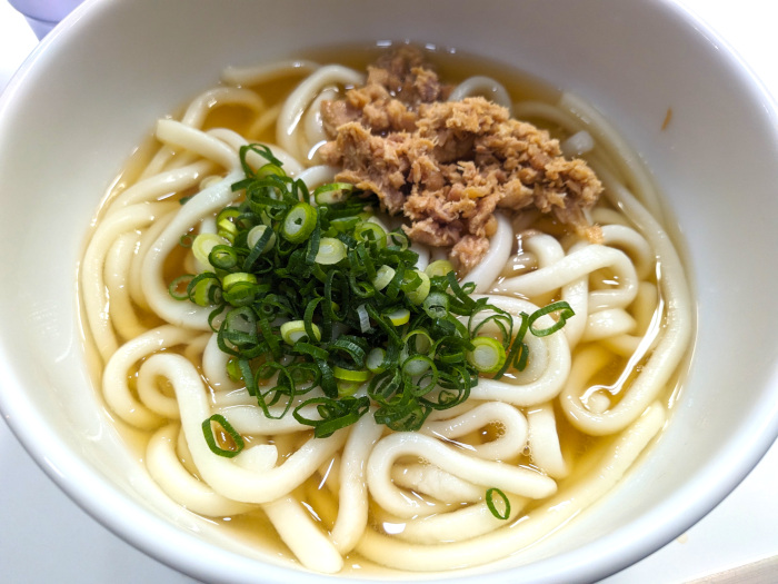 うどんは関西と同じく茹で置きのフニャフニャタイプで、出汁は昆布と煮干しで取られた素朴な味わい。