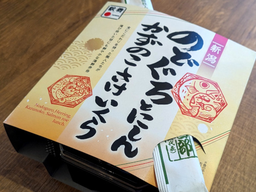 火曜日の阪神百貨店駅弁大会で「EXPO2025 ミャクミャク ひっぱりだこ飯」と一緒に購入したのが、新潟駅神尾弁当部の駅弁「のどぐろとにしんかずのこさけいくら」(1750円)。