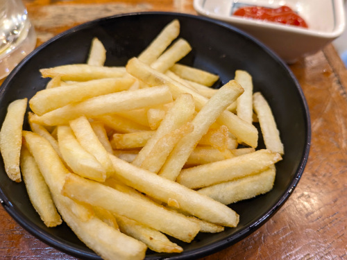 カラッと揚がったポテトフライには、袋入りのケチャップが付いてきます。