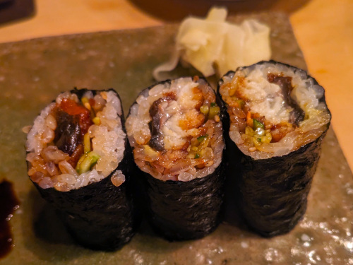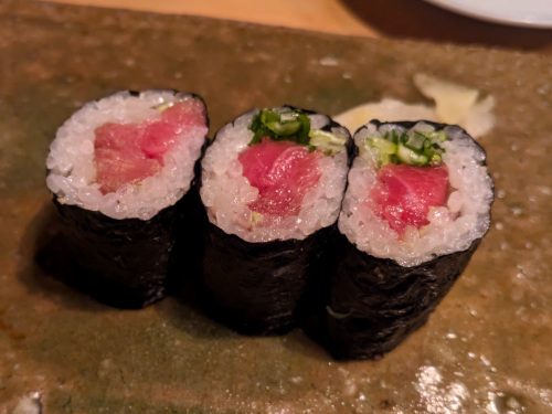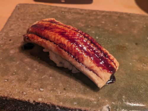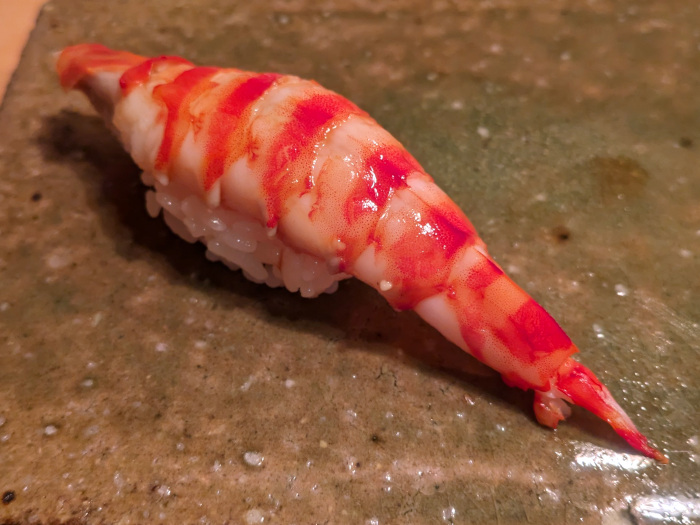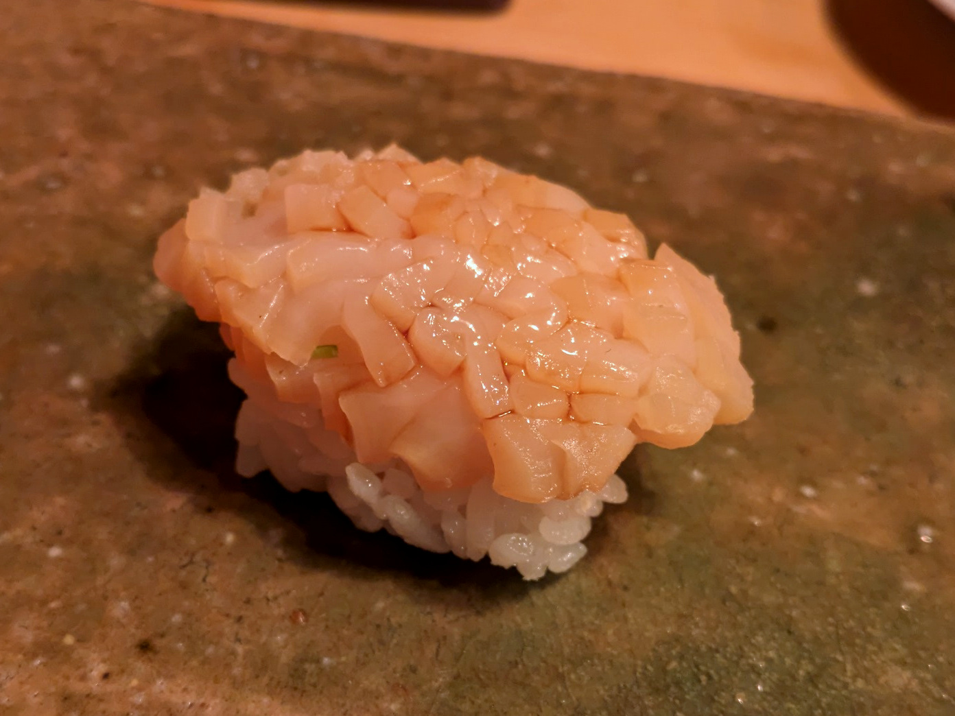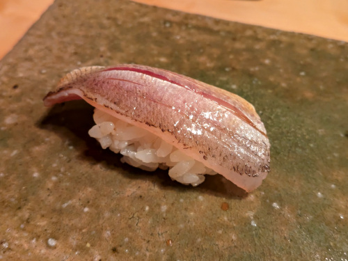 握りは越中屋同様に少し小ぶりですが、シャリの酢が少し控えめで、口の中で米がホロリとほぐれる柔らかさが、全く別の個性を感じさせて面白いです。