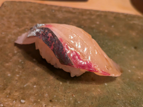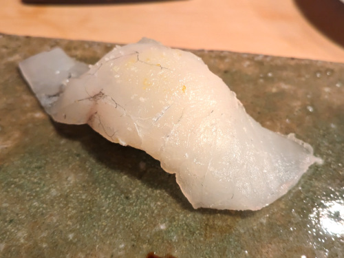 おまかせ5貫から、淡白で上品な味わいのカスゴ。