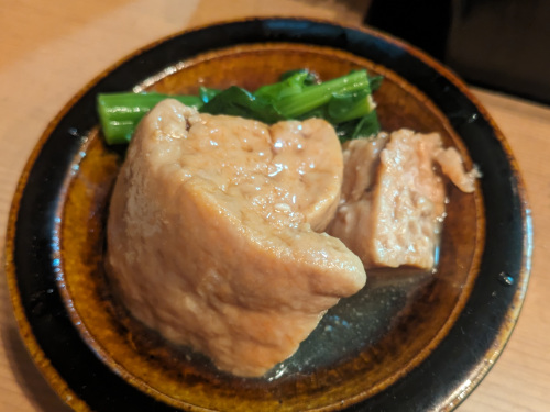 アテを追加で、女将さんオススメのあん肝煮付け。出汁で煮込まれているあん肝がトロトロと溶ける舌触り。