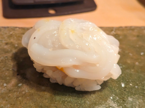 アオリイカは細切りにされたものが丁寧に握られ、実に食べやすいです。