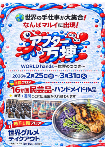 2月25日から3月末まで、なんばマルイで「アフター万博 WORLD hands~世界のつづき~」と称して、万博に参加した16カ国の民芸品やグルメが楽しめるイベントが行われています。