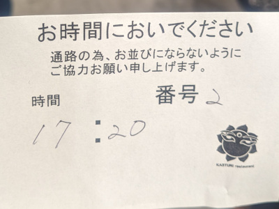 マルイでも朝から整理券が配られるほどの人気ぶりで、現在は茨木のカストリーレストランというお店で食べられるみたいなので、また別の機会にするかなと思ったのですが、午後4時半から再び整理券が配られると張り紙があったので、日曜日に並んでみる事にしました。