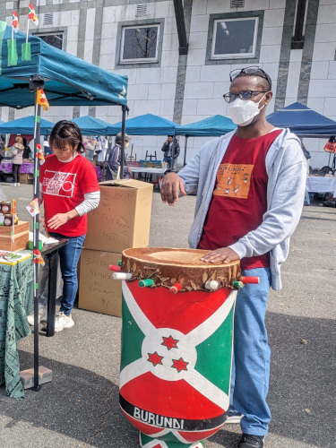 ブルンジのブースでは、今度は大きな太鼓を携えて”イノカワ兄さん”も復活。