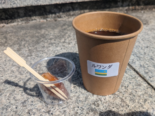 コーヒーの屋台でルワンダのコーヒー、フルーティなアルジェリアの生デーツで食後のデザートをいただきました。