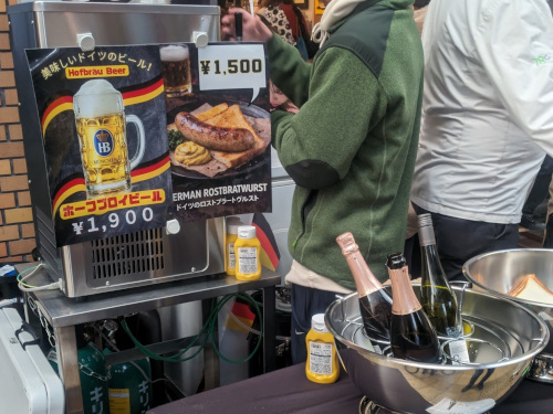 しかしビールの値段は1杯なんと1900円! 堺のピルスナー・ウルケルの倍ですよ・・・(@_@;) ソーセージも1本1500円の超強気万博価格で、とても手が出ずにすごすごと引き下がりました(笑)。