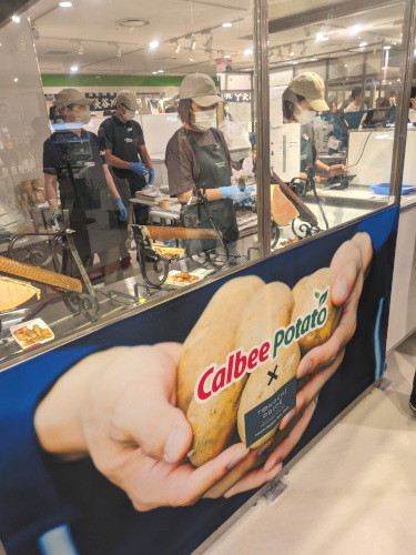 ラーメンやカツスパといったイートインは既に何十人ものウェイティングになっていて断念。会場内をウロウロしていたら、「カルビーポテト×十勝プライド」のコラボメニューを発見。