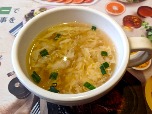 スープは、いつもと同じとろみのついたかきたまコンソメスープ。