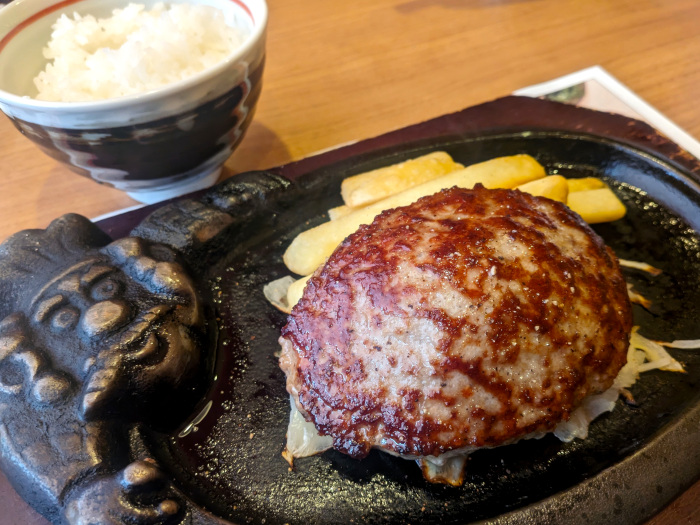 オーダーは、いつものビリーハンバーグランチ(1133円)。ブロンコビリーはサラダバーが有名ですが、頼むと食べすぎになるので毎回スルーしています(笑)。