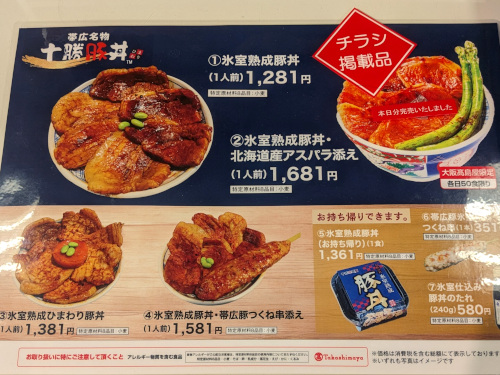チラシにはアスパラ入りの豚丼が掲載されていましたが、オーダーはいつものようにデフォルトメニューの氷室熟成豚丼(1281円)。