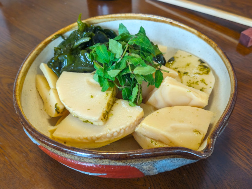 若竹煮は大ぶりの器にたっぷり盛られて食べ応え満点。天然出汁で薄味に煮込まれ、自分的に理想な味付けで嬉しかったです。