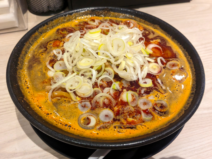 ラーメンのメニューはやたら豊富ですが、まずは初見なので店名を模した「烈火らーめん」(950円)をいただいてみる事に。辛さは10段階選べるそうで、真ん中の5辛にしてみました。