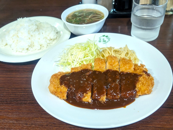 ダークな色合いのドミグラスソースは、焦がしたルーのビター感と、ケチャップの甘みのバランスが良くて、やっぱりこちらのソースは自分好みだと再確認。