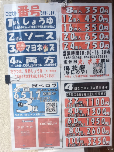 先日、アフター万博のイベントで長居植物園へ訪れた際、ミシュランにも掲載されたことがあるたこ焼きの人気店「浪花屋」を覗いてみたら、10人程度の行列だったのでテイクアウトする事にしました。