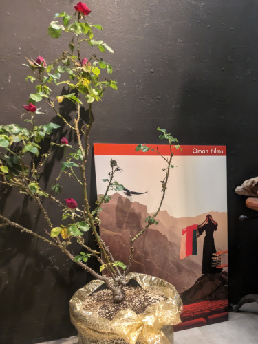 2階の入口には、万博のオマーン館で植えられていたスルタンカブースローズの鉢植えがお出迎え。