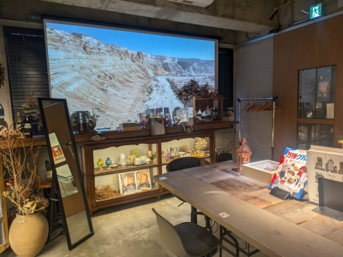 店内は数々の中東アイテムが飾られ、大きなスクリーンでは環境映像が流されています。