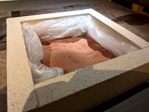 そしてテーブルの上にはヨルダン館のワディ・ラム砂漠の砂があって、自由に触ることが出来ます。